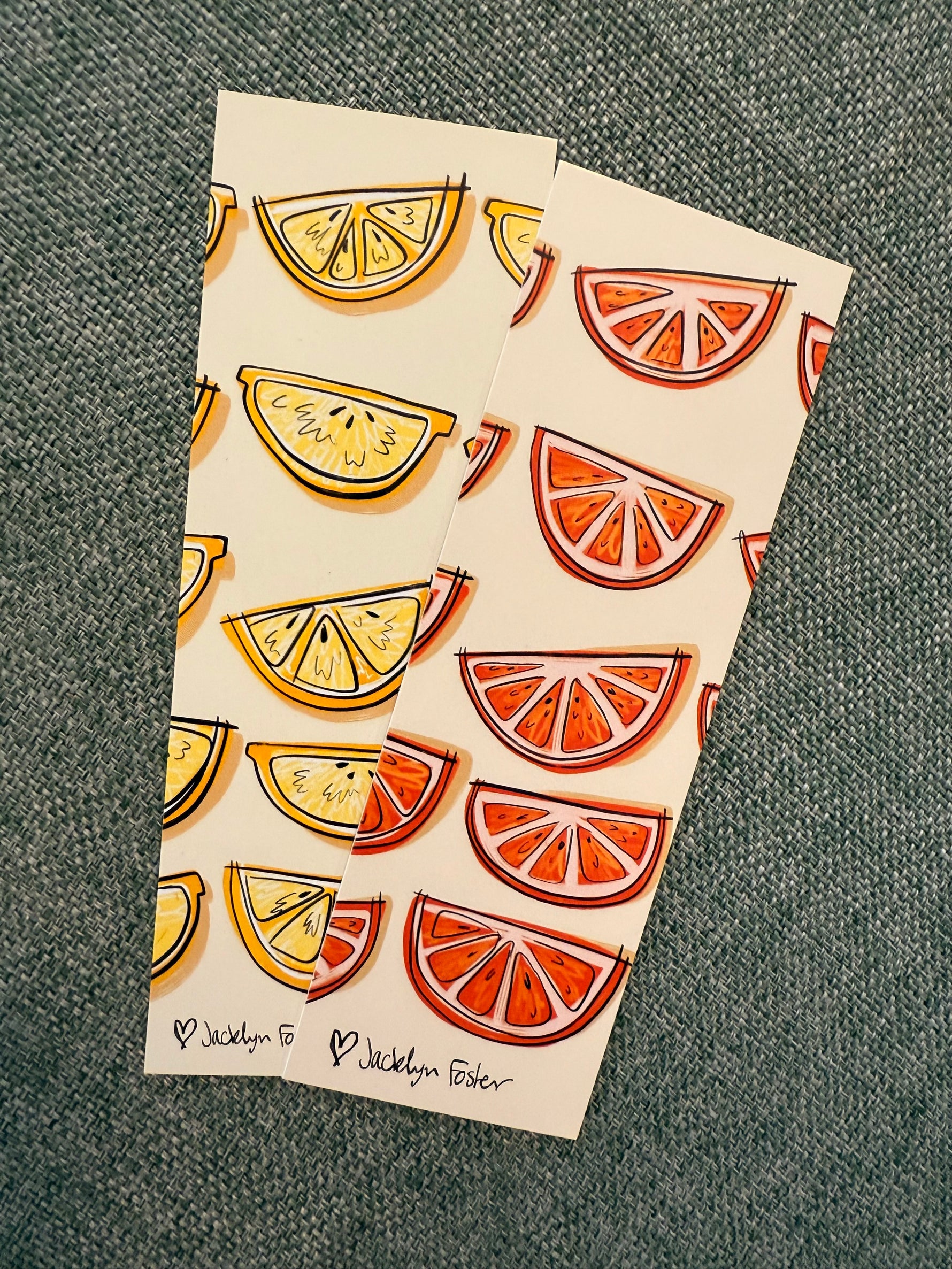Bookmarks are finally here. One of the most popular items at the farmers market, you can finally buy them online! Purchase the pair of bookmarks, with the designs from the Kitchen Poster Club.