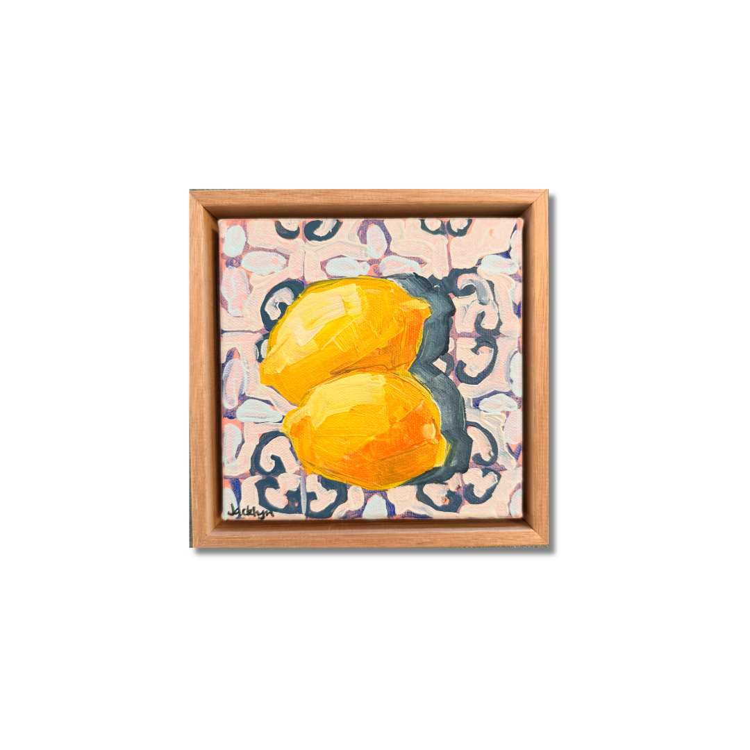- Subject Matter: Still life, food, citrus, lemons, drinks, dining, fruit, kitchen art, tiles, mediterranean