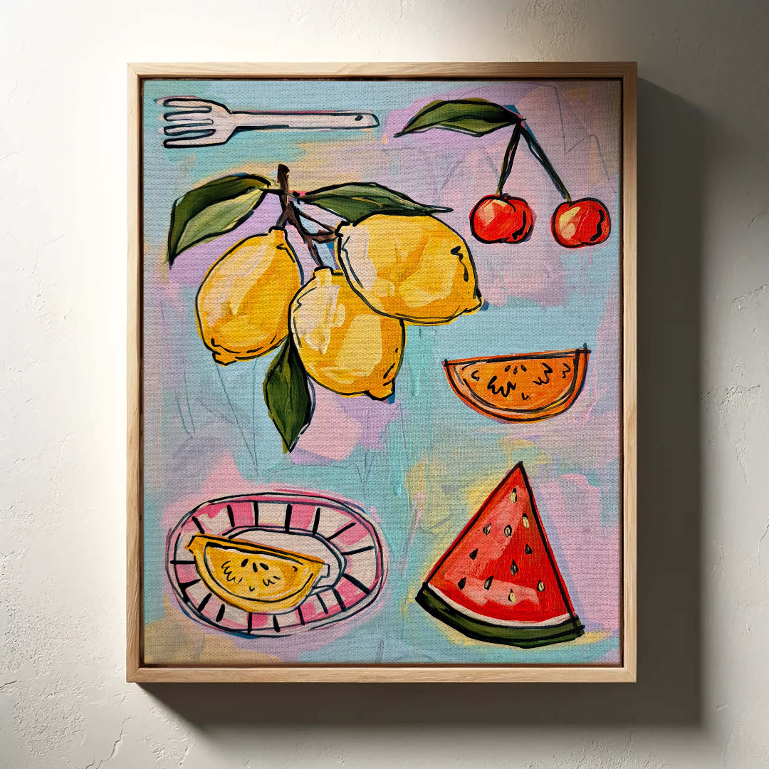 - Subject Matter: Fruit, cherry, lemons, oranges, citrus, watermelon, kitchen, dining