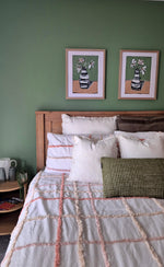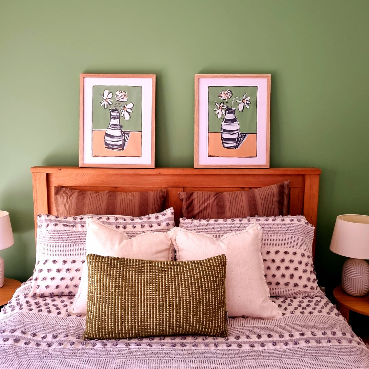 Created using the exact paint we used on the wall, to match it perfectly. I had a vision, and it came to life. They look even more beautiful that I imagined and I can't wait to get them up on the wall. It just pops next to the beautiful green wall! ๐ And now I can't wait to share them with YOU!ย Theย unframed, 310gsm textured high quality paper prints arrived rolled in a protective tube, ready to be framed in a style of your choosing, something to suit your dรฉcor.
